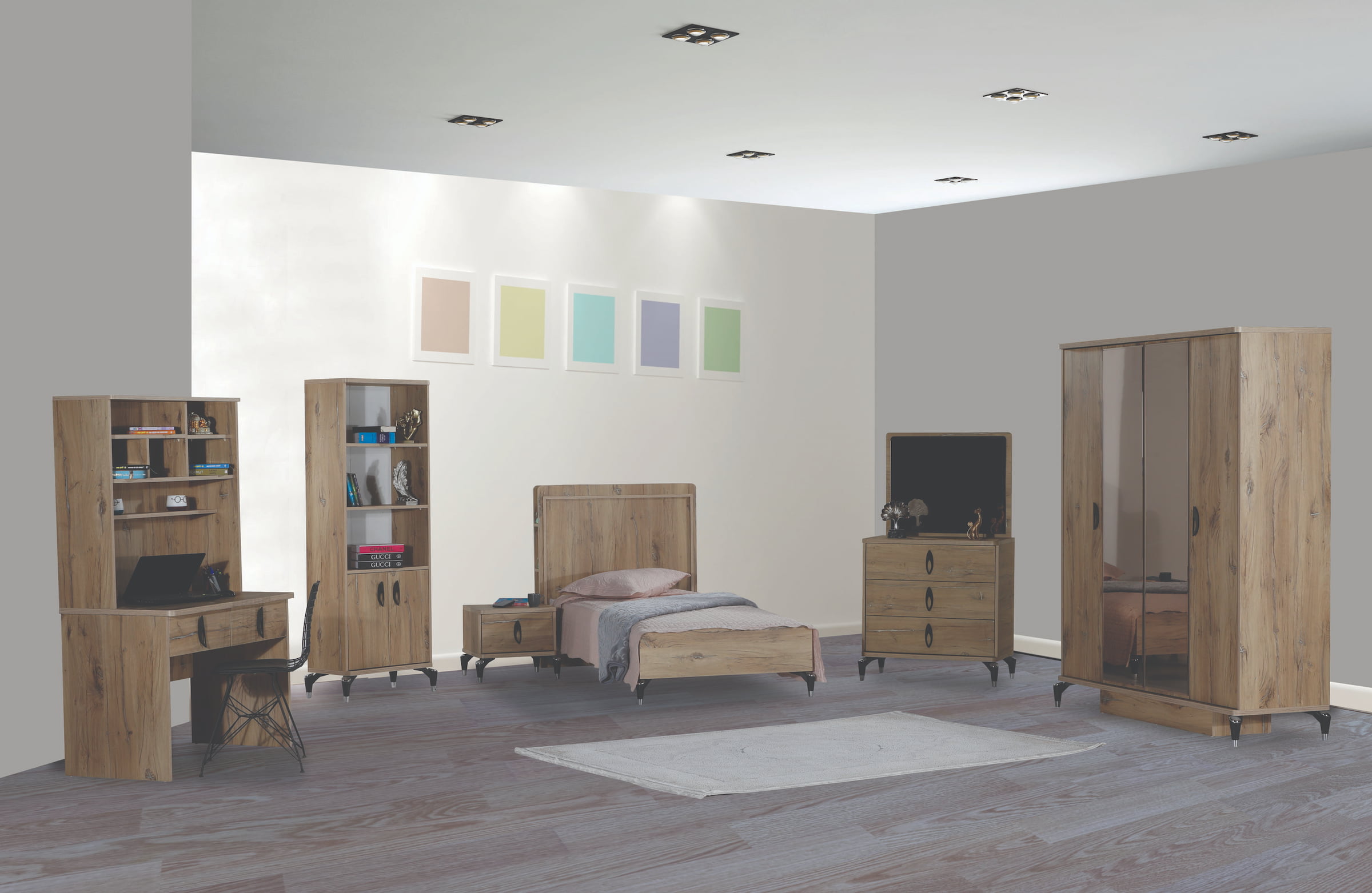 Konfor ve şıklığın en güzel uyumunu genç odası takımlarımızda keşfedin! Şık tasarımı ve yüksek kaliteli malzemeleriyle özenle üretilen bu özel ürünleri detaylıca inceleyin, genç odanızı şıklık ve konforla buluşturun!