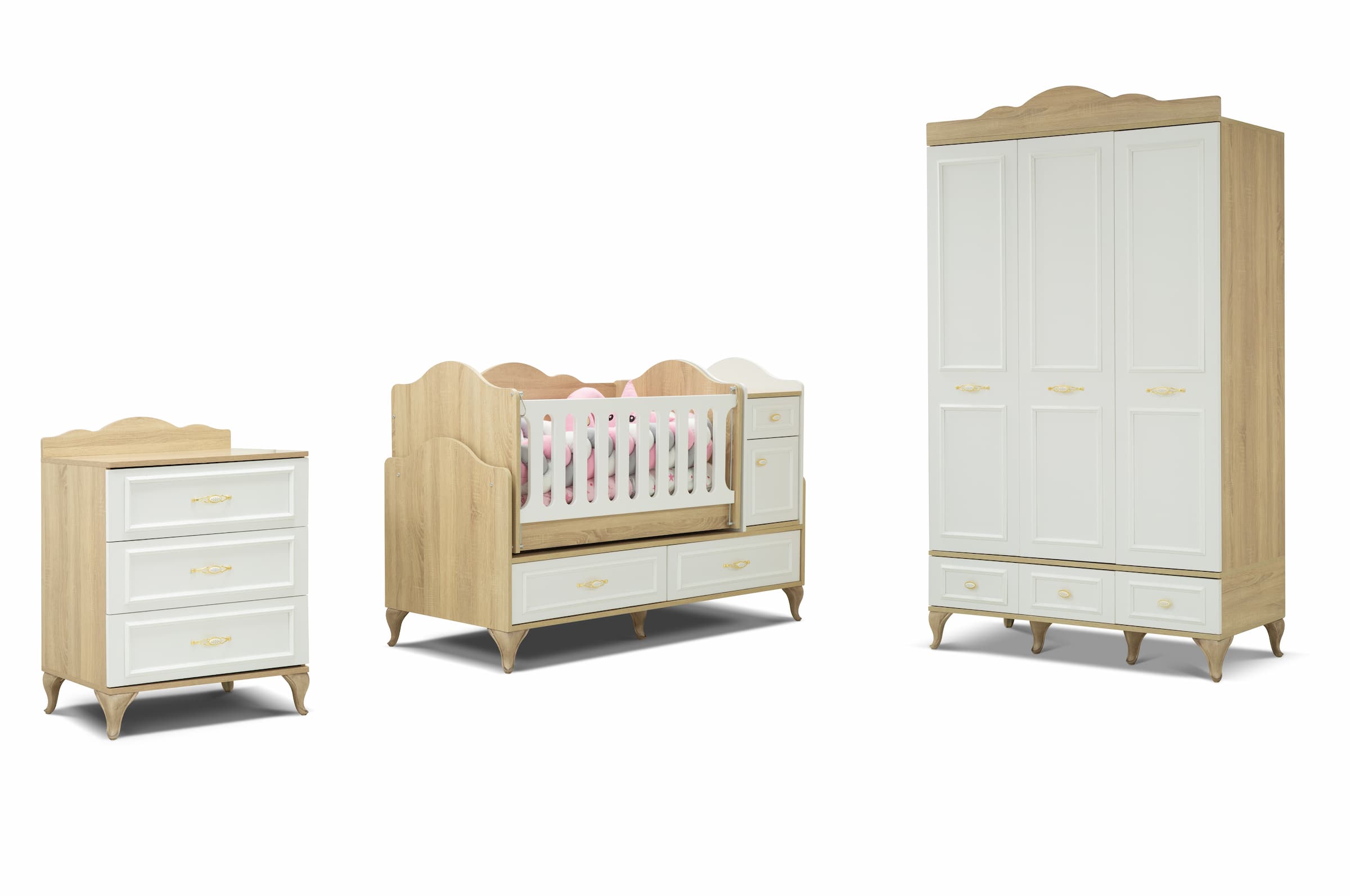 Set İçeriği: Mia M-1 Şifonyer + Mia M-1 Dolap + Mia M-1 Beşik